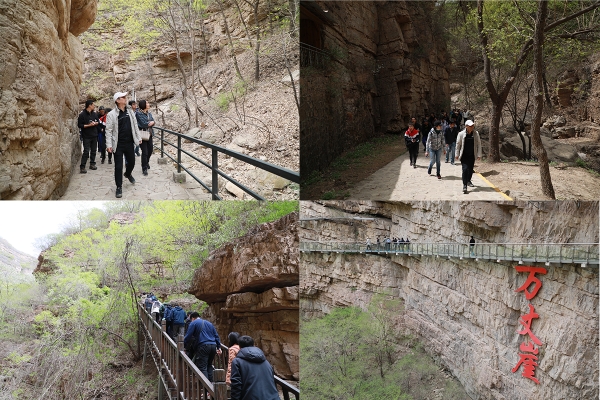 參觀活動結(jié)束后,大家開始游覽京東大峽谷,沿著崎嶇的山路,欣賞大峽谷鬼斧神工的自然景觀。漫步于美麗的龍門湖,看群峰倒映水中;依崖而建的人工棧道,猶如攀巖在懸崖峭壁上,大家身臨其境,感受當(dāng)年軍民抗日的艱難險境;天然形成的五龍?zhí)丢毦犹厣械纳畈豢蓽y,有的靜若處子,有的湍瀉奔流,為大峽谷增添了靈氣。大家在曲折陡峭的山路中穿行,互相鼓勵,相互扶持,順利通過。一路游覽,一路暢談,一路體驗,大家感受到了自然風(fēng)光的美麗和今日生活的美好。